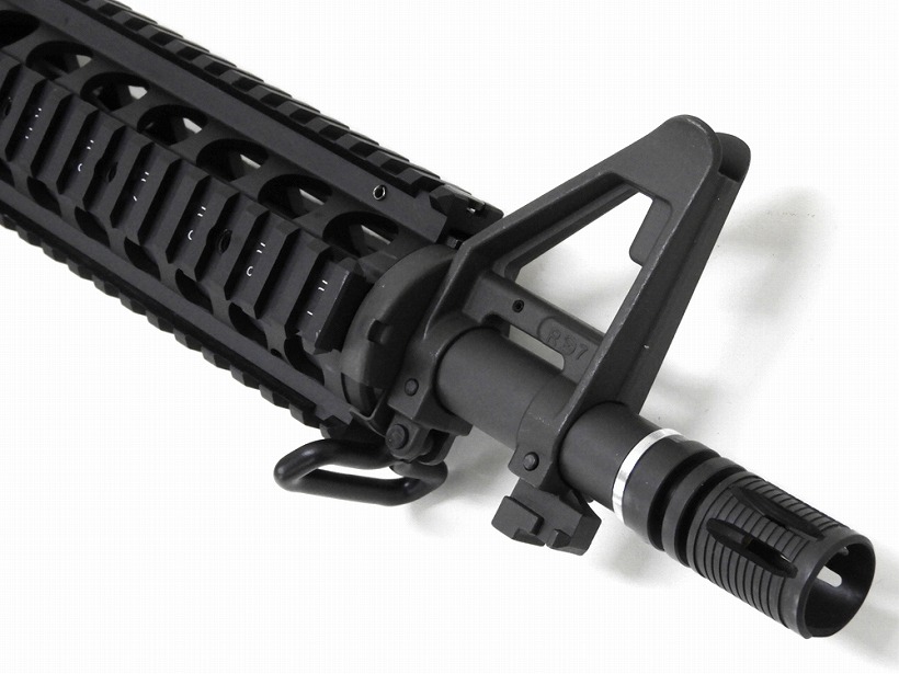ナンバリングが再現され、アルミ製ヒートシールドが内蔵されたアルミ製ハンドガードをはじめ、LMTタイプQDリアサイト、レシーバーの製造時期による色の違いを再現したNavyバージョンM16A1ロアーレシーバー、KACタイプのQDハイダー等々ハイグレードパーツを多数搭載!米海軍特殊部隊SEALsで使用される特殊任務向けの短銃身モデルを、完全モデルアップ!短く取り回しに優れる、10.5インチのCQBサイズアウターバレルを搭載!