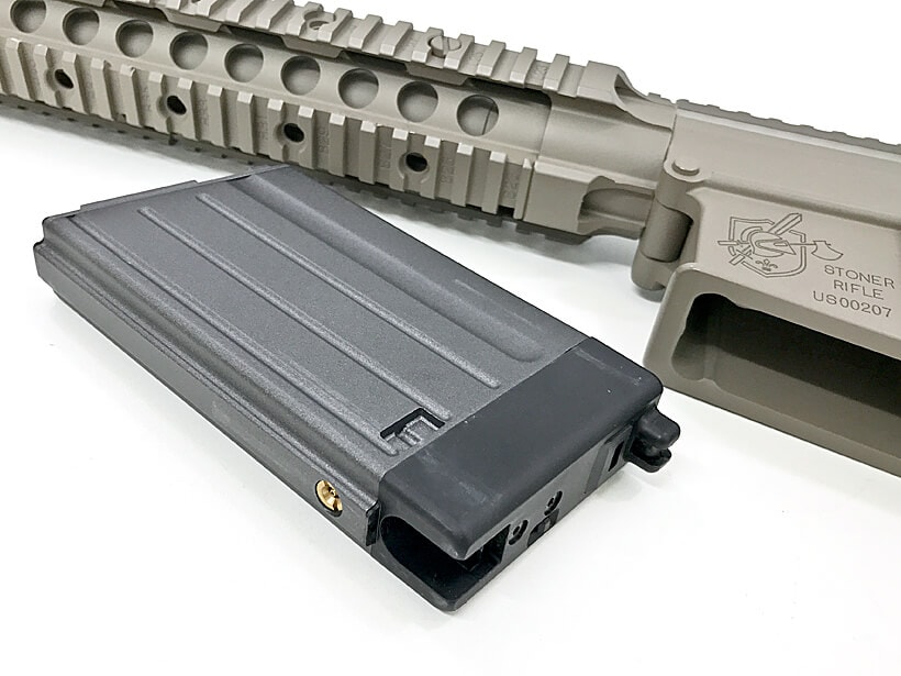 同社SR25と共用のマガジンは空撃ちモードにもできるのが部屋撃ち派にも嬉しいところ。