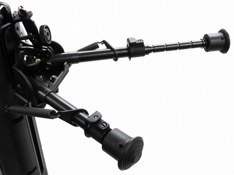 精度の高い狙撃には必須な伸縮式のバイポッドが取付られています。