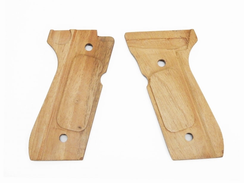 ベレッタ92シリーズ用木製グリップ。ベレッタ社製の実銃用モデルによく似ていますが詳細は不明です。