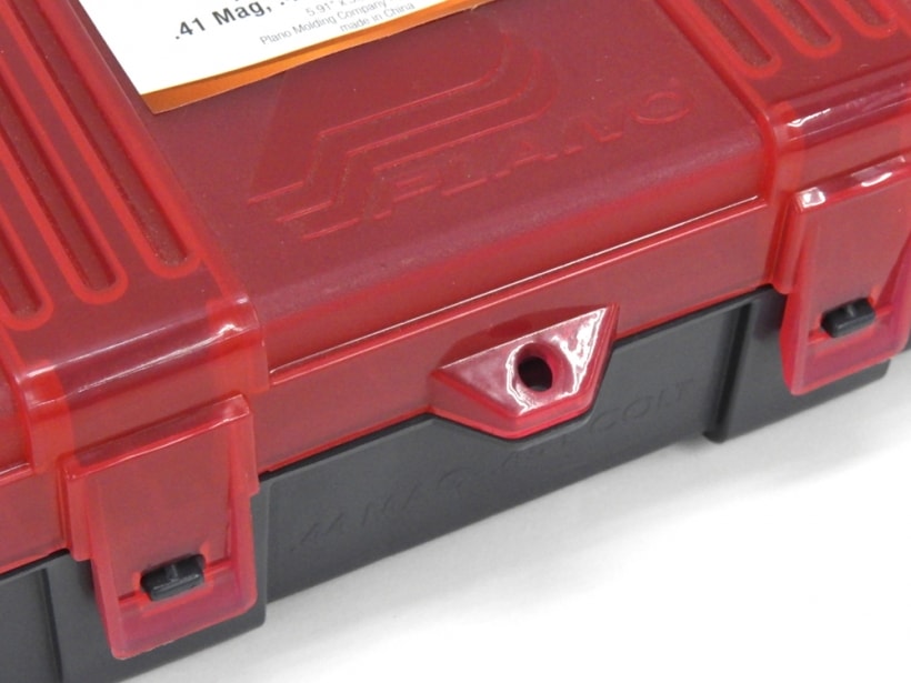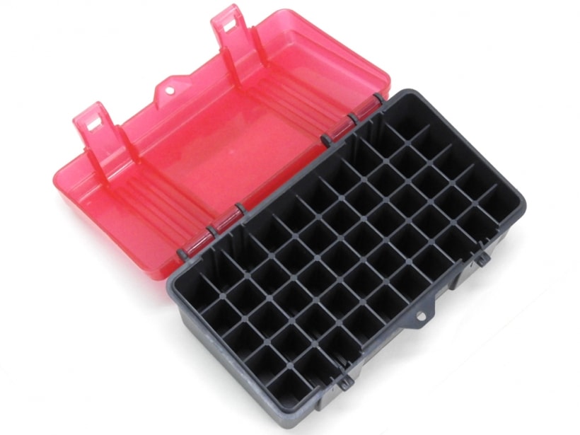 高品質なポリプロピレン製ツールボックスなどで世界に知られるプラノの50発収納できるハンドガン 弾薬ケース。鍵のかけられるホール付き。