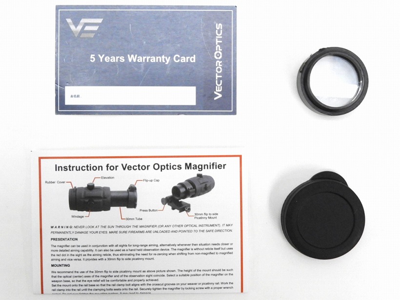 [VECTOR OPTICS] 3倍 magnifier ブースター ショート 3倍~ ピカティニー ビルドインマウント scot-07 (中古) 製品詳細画像8 付属品一覧