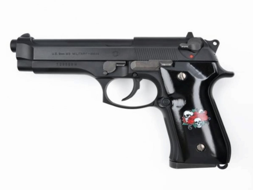 [MIESSA] ベレッタ M92 ガスガン対応 木製グリップパネル 【髑髏と薔薇 - 勝負師】 (新品取寄)の販売ページ|エアガン.jp