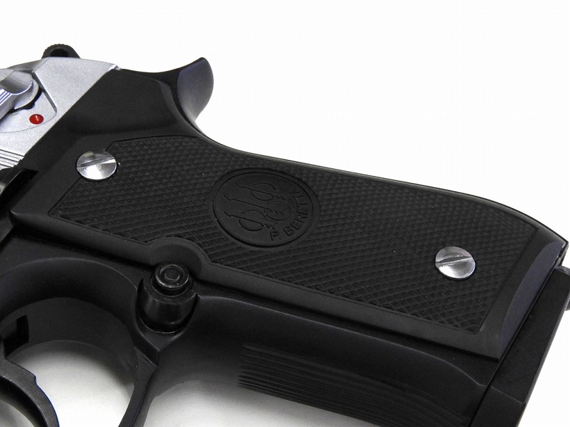 2008年に公開されスマッシュヒットとなった映画「96時間」に登場する2トーンカラーが印象的なべレッタM92FSをモチーフに、ステンレス製&アルミ製カスタムパーツを使用して製作いたしました。