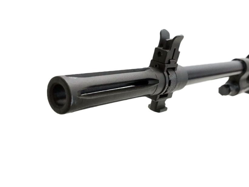 また、銃本体の開発はM1ガーランドをベースに進められ ガスオペレーション機構の改良 8連のクリップ(装弾子)式装弾方式から20連のボックスマガジン方式への変更、 銃口部には反動や発射炎を抑えるためのフラッシュサプレッサーを装着、 セミオート機構にフルオート発射機能の付加など「歩兵用ライフル」と「分隊支援火器」を兼ねると言う軍首脳部からの要求を見事に盛り込んだ形でM14は誕生し、1957年には軍の制式採用となるのである。一撃で相手を倒せる凄まじい威力と、長距離の狙撃戦にも対応可能な高い命中精度は兵士からも絶賛され、陸軍・海兵隊の第1線部隊に配備、140万挺余りが生産されることとなった。