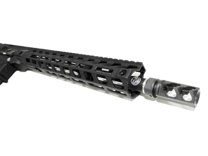 レシーバー、ハンドガード、フルートアウターバレル、マズルブレーキ、バッファーチューブはメタルパーツで構成。