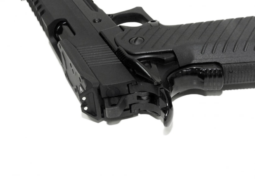 ジャパンバージョンはスライドが樹脂製となり、フロントサイト/リアサイトともに蓄光ドット入りのナイトサイト仕様。リアサイトベースにはRMRやDOCTERといったマイクロドットサイトのダイレクトマウントも可能。