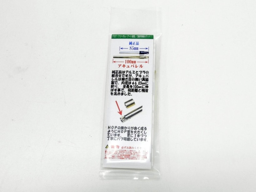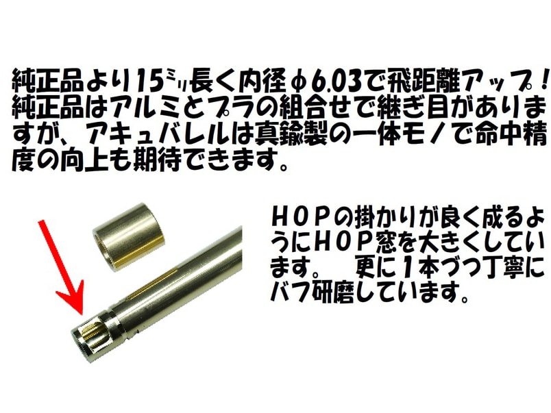 東京マルイSAA45用のアキュバレル。純正品より長く、真鍮製一体型のものなので飛距離や命中性の向上が期待できます。