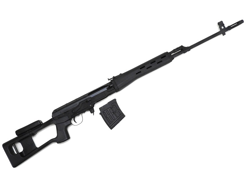 亜鉛合金、ナイロンファイバー製ストックを採用したドラグノフ。サイドマウントはもちろん実物スコープ搭載可能なリアルサイズ。マガジンもスチールで満足度は非常に高い。