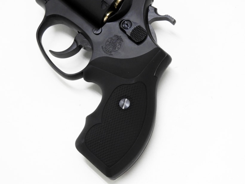 [マルシン] S&W M36 チーフスペシャル 6mmXカートリッジ マットブラックABS 2インチ プラグリップ仕様 (新品) 製品詳細画像4 プラグリップ仕様がメーカーの正式名称ですがラバータイプのグリップとなっています