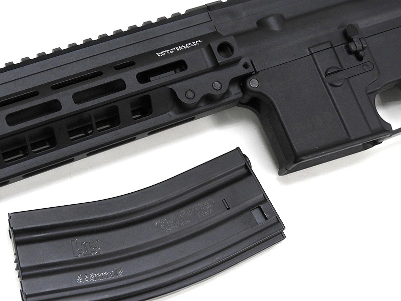 独ヘッケラー&コッホ社が開発したカービンタイプのアサルトライフル。アメリカ陸軍がH&K社にM4カービンの改修を依頼して開発されたもので、全体的なデザインや操作・分解方法もM4と共通している。相違点としては撃発がショートストロークピストン式、ピカティニー・レールシステムの標準装備、スチール製弾倉の採用などがある。HK416Dは公的機関向けモデルで「D」は「Defense」の略。