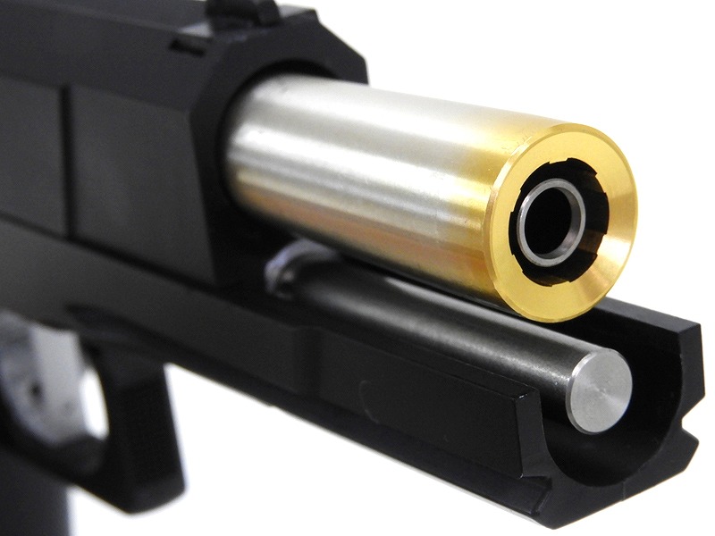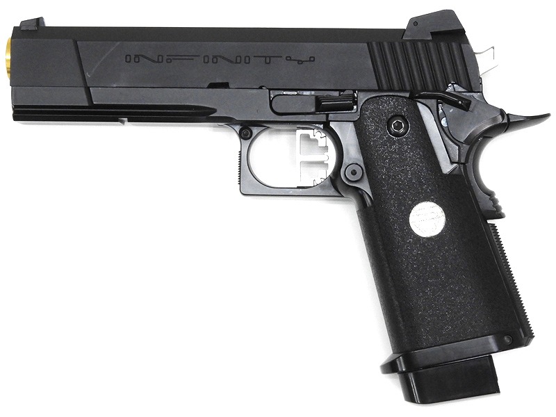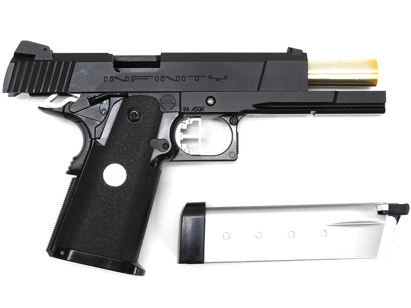 ハンドガンの場合は全体を金属性とする組み換え、エアソフトガンの場合は射出エネルギー0.98J以上にする改造を行うと銃刀法違反となります。HFC134a仕様のガスガンにCO2用マガジンを組み込む、スライドを金属製の物に差し替える等、簡易な改造でも罪に問われる可能性がございますので、絶対にお止めください。