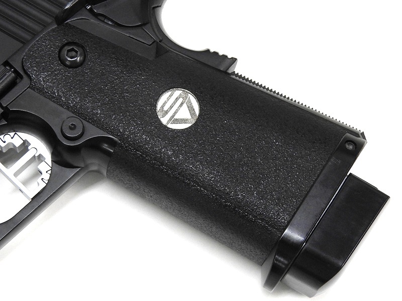 SVI エキスパートピストルは、スライド形状が個性的なスリーサイデッドタイプ。普段見慣れた.45オートとは違う、近代的な魅力にあふれたSVI社最新のスタイルです。
