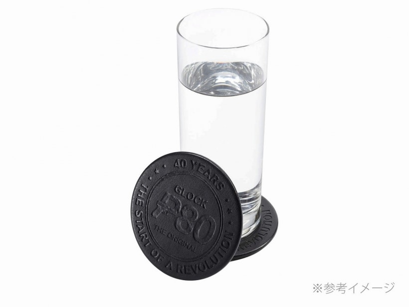 [GLOCK] P80 Anniversary 合皮コースター 2枚セット (新品) 製品参考画像 使用例※グラスと水は付属しません