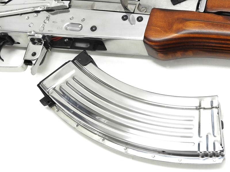 [LCT] AKM ステンレススチール SUS304 フルメタル電動ガン lct-lckm-ss (中古) 製品参考画像9 マガジンもステンレスシルバー!