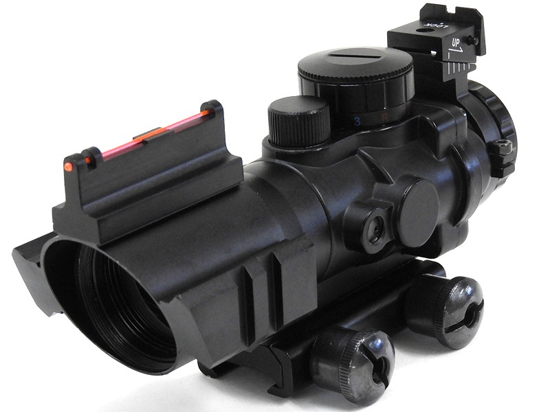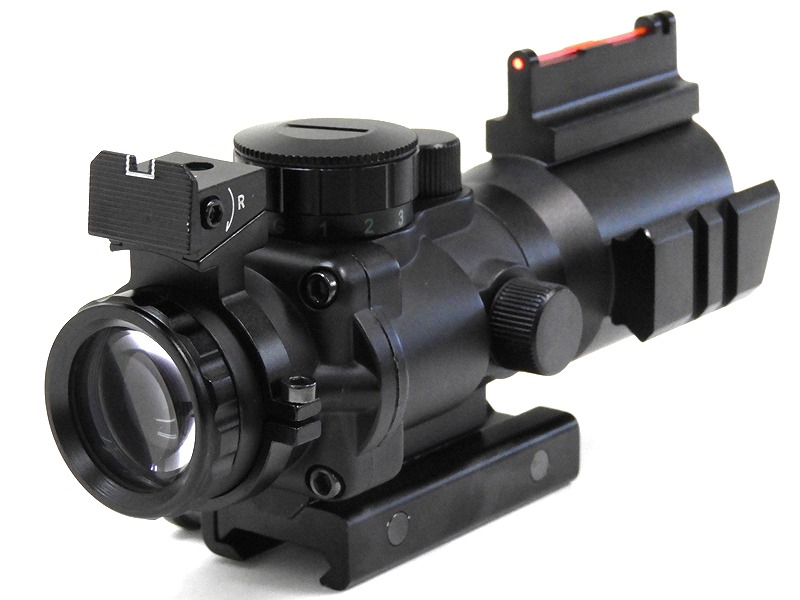 [UFC] 4×32 R/G/B ダブルレール スコープ ショート 3倍~ ピカティニー ビルドインマウント イルミネーション チリあり NBSC26BKD (訳あり)の販売ページ|エアガン.jp