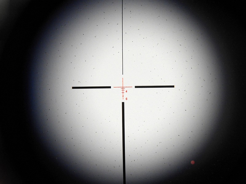 [UFC] 4×32 R/G/B ダブルレール スコープ ショート 3倍~ ピカティニー ビルドインマウント イルミネーション チリあり NBSC26BKD (訳あり) 製品詳細画像6 レティクルの周りにチリがある。発光は問題なし。