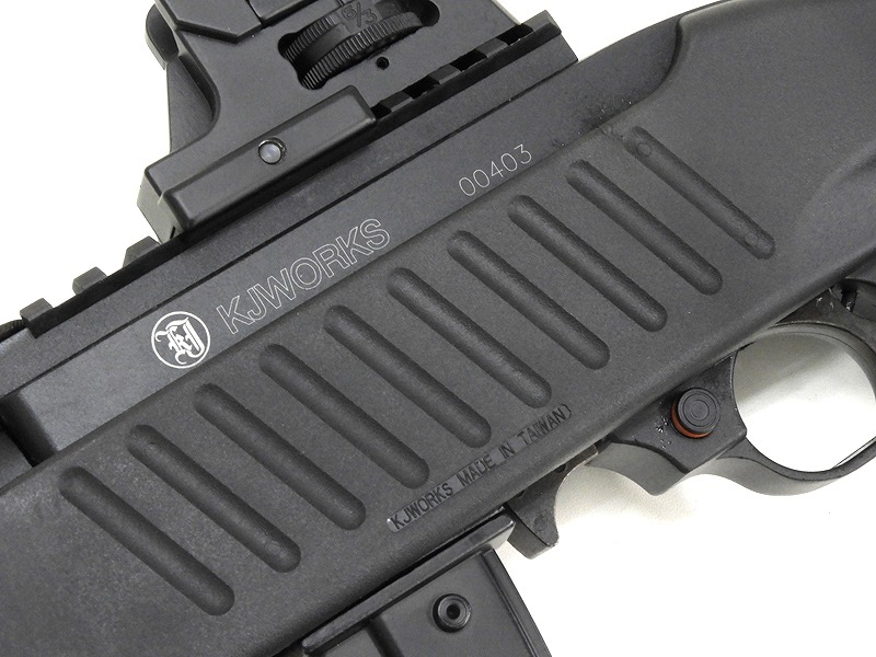 M4スタイルのピストルグリップとリトラクタブルストック、上下左右合わせて4面の20mmレイルシステムを組み合わせ、よりアグレッシブなスタイルに仕上げられている。内部メカは日本国内向けに改修されたジャパンスペックモデルとなっており、パワーも安心できるものになっている。快調に動作するブローバック機構はゲームで使用してもなんら問題ない。