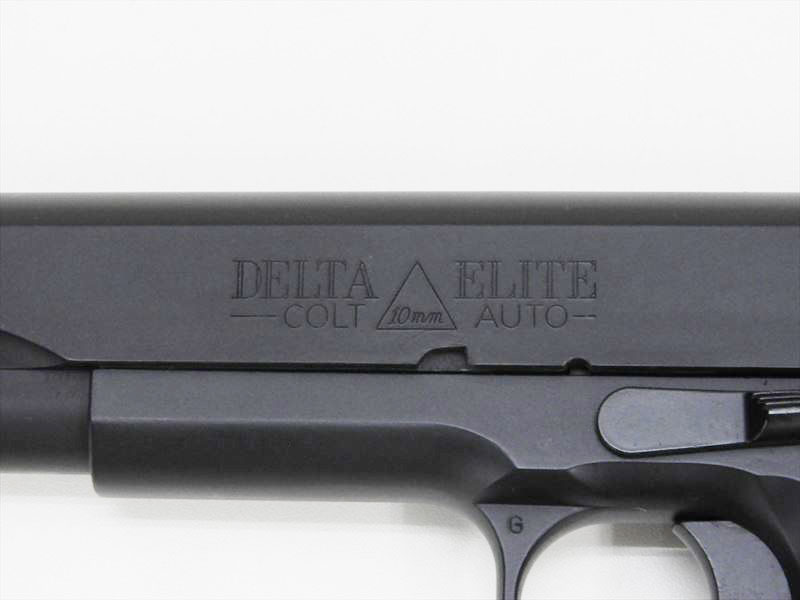 口径10mm弾を使用するモデル。スライド左側面のデルタロゴ、アウターバレル、チャンバーカバー刻印、グリップセフティ、フロント&リアサイトデルタロゴ入ラバーグリップを再現!!