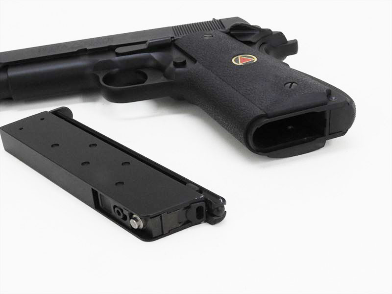 ハンドガンの場合は全体を金属性とする組み換え、エアソフトガンの場合は射出エネルギー0.98J以上にする改造を行うと銃刀法違反となります。HFC134a仕様のガスガンにCO2用マガジンを組み込む、スライドを金属製の物に差し替える等、簡易な改造でも罪に問われる可能性がございますので、絶対にお止めください。