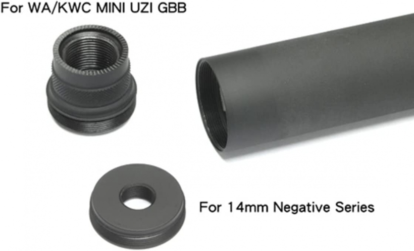 台湾老舗エアガンメーカーのGUARDER(ガーダー)製です。 ミニUZIサイレンサー WA/KWC用。 14mm逆ネジ用アダプター付属。
