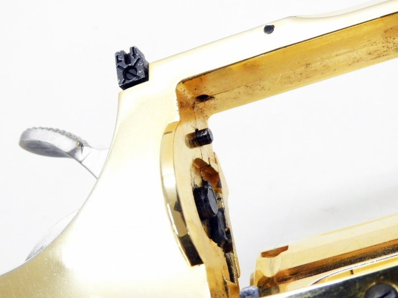 金メッキが十分残っており、小キズが多いながらも美しく部品の消耗も殆どないきれいな一丁。