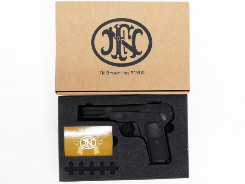 当時、ブローニング氏設計のM1899を元に改良し市販化された、 FN社最初の市販オートピストル、M1900がモデルのエアコッキング エアガン