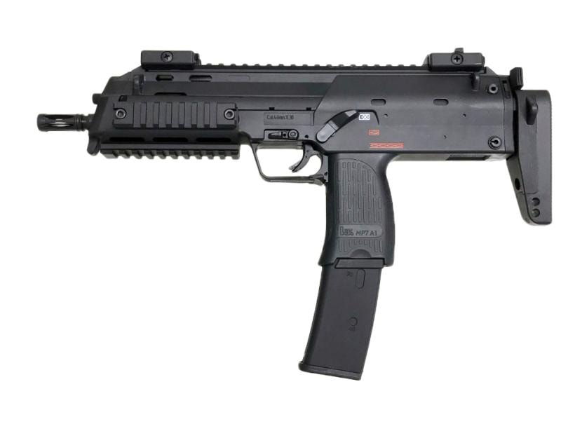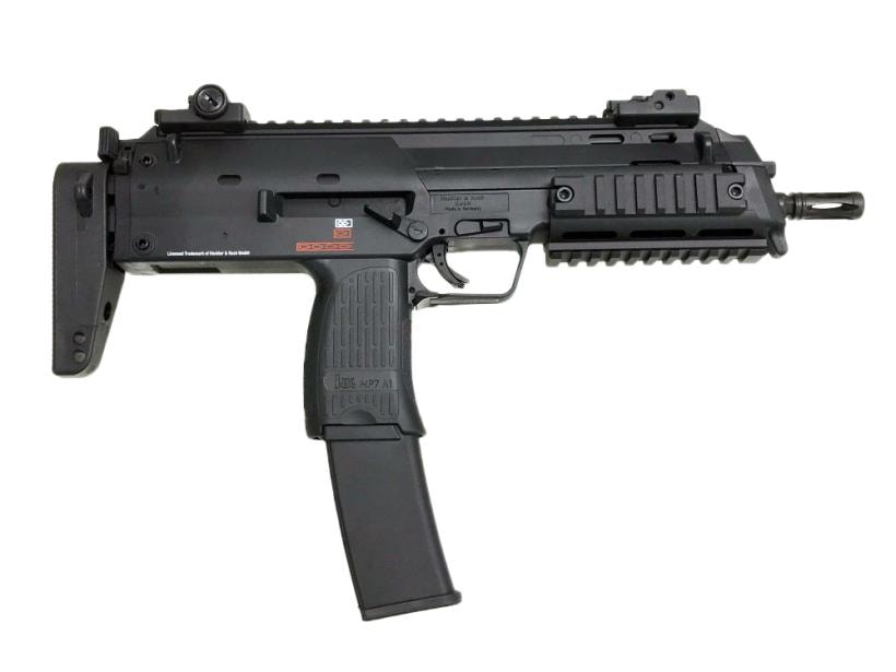 ドイツのヘッケラー&コッホ社が開発した短機関銃。防弾ベストの着用が広まった1990年代に戦場で用いるピストルに変わる銃器、PDWの開発が欧米で始まった。それを受けてH&K社が提出したのがMP5K-PDWであり、続いてライバルのFN社が発表したP90に対抗して発表されたのがMP7である。1999年に発表され2000年にドイツ連邦軍に仮制式採用された。同種のPDWと比べると小型・軽量であることが特徴で、携行性と隠匿性を重視したデザインとなっている。