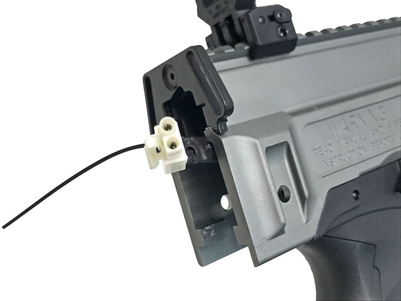 G36タイプのマガジンに加え、パーツを組み替えることでM4マガジンにも対応。バッテリーは7.4vスティックタイプを推奨しています。