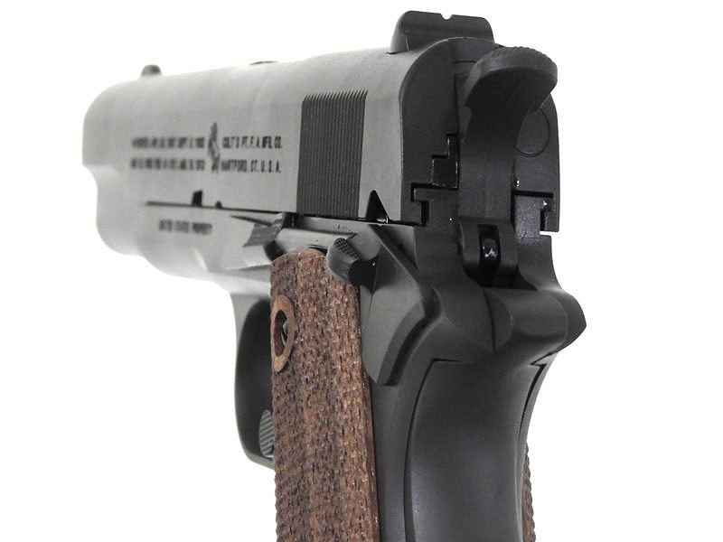 ・M1911A1 CO2GBB 2ndロットベースとなり、ショートリコイル・リアルモールドアウターバレル、スライドストップメタルブラケット装備