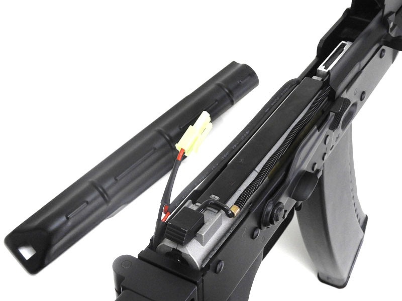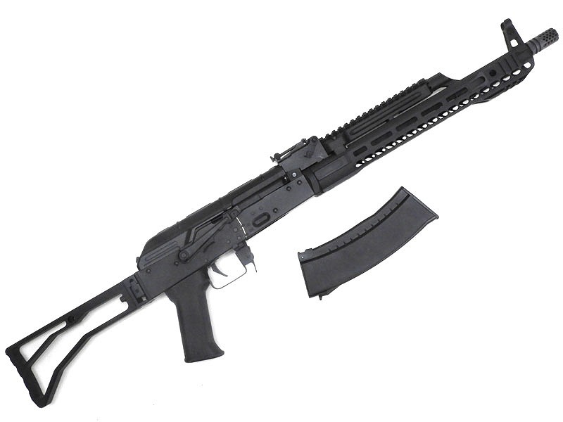 1974年にソビエト連邦軍が従来のAK-47系列の後継として採用した自動小銃。ベトナム戦争でアメリカ軍のM16によって小口径の利点が明らかになったのを受けて開発され、AK-47の7.62mmから5.45mmへ小口径化されている。その他マズルブレーキが大型化され、反動の軽減や発射炎の抑制を実現している。外見は旧来のAK-47系と似通っているが使用弾薬が異なるため互換性はない。