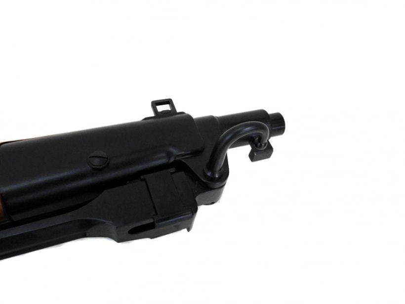 さらに今回から銃床は実物の三八式にも使われた「鬼胡桃」(オニグルミ:国産のウォールナット材)を採用しました。銃身や機関部分はブラックとなりますが、ボルトのみオリジナル仕上げのグレースチールフィニッシュを施しています。