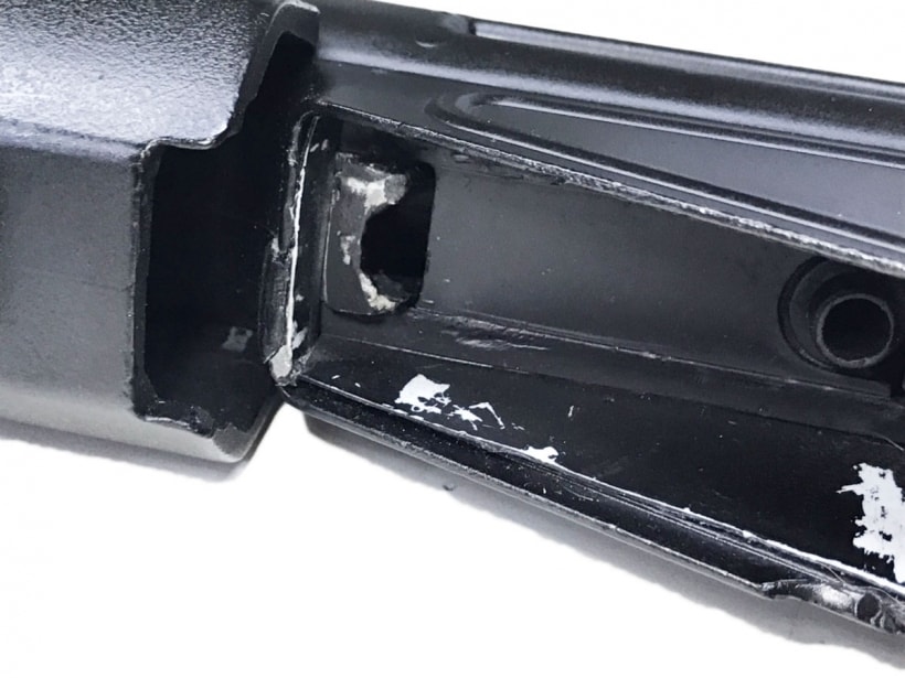 マガジン接続部のツメは中央部分が欠けている状態だが、マガジンが脱落するなどの症状は現状起きておらず、射撃は可能。