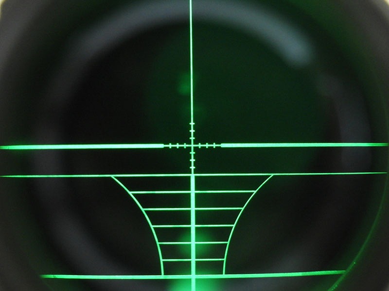 [NB] 3-9倍率 40mmレンズ径 イルミネートライフルスコープ ロング 3倍~ ピカティニー Φ30mm イルミネーション 視度調節機能搭載 ハイプロファイルマウント付き (中古) 製品詳細画像10 レティクル緑色発光時。