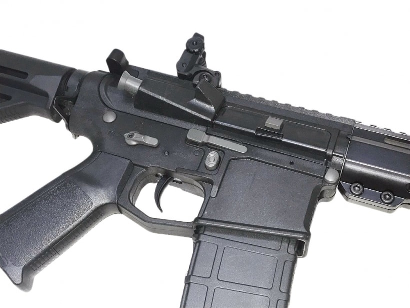 ストック、グリップ、サイト、マガジンがマグプルタイプで手軽にカスタムAR-15の雰囲気を楽しめる。