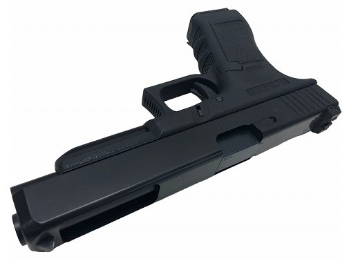 スライド、フレームともオールHW(ヘビーウェイト樹脂)製。スライド部分はバフ研磨と黒染めを繰り返して仕上げる『ウルチメイトブラック』工法で作られています。