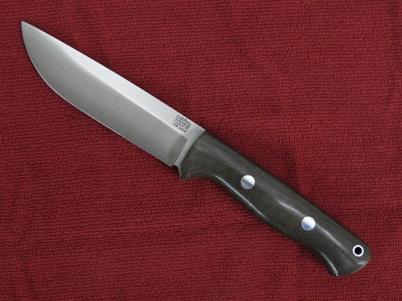 刃材には優れた刃持ちと耐腐食性を持つ高級鋼材CPM S45VNを使用。柄材にはこれも耐久性が高いマイカルタを採用し、扱いやすさとアウトドアでの信頼性を究極的に体現したナイフとなっています。親指止めがないランプレスモデル。