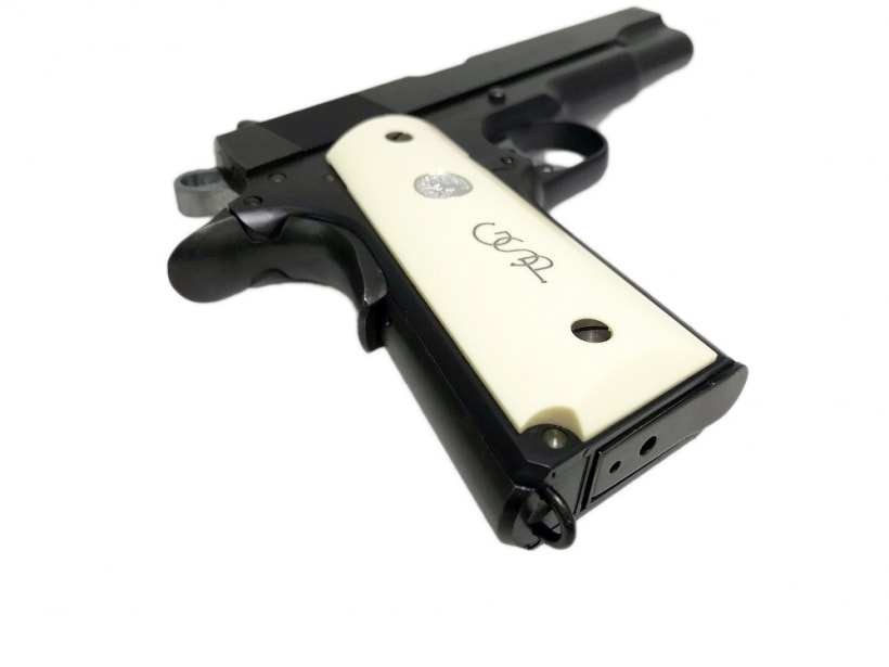 加えて、グリップにはお約束のアイボリーカラーグリップが取付けられた他、ファンをニヤリとさせるGSP(ジョージ.S.パットンJr)の文字が彫り込まれている。