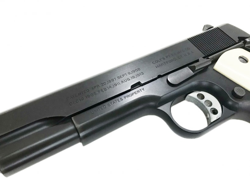 1911年にアメリカ軍に制式採用され、軍用拳銃としての制式名称「M1911」、のちに1926年に改良が加えられたものは「M1911A1」を与えられた。その後1985年、後継となるベレッタM92Fが制式採用されるまで、実に70年以上にわたってアメリカ軍の制式拳銃であった。今なお、一部の特殊部隊では改造されつつ使用され続けている。 .45ACP(.45Auto Colt Pistol)という大口径弾を使用するこのモデルは、ストッピング・パワーの高さによって信頼された。軍用のM1911およびM1911A1の口径は.45ACP、装弾数はシングル・カラム・マガジンによる7+1発であるが、その後の民間でのバリエーション展開によって数々の口径に対応したバージョンが発売された。 現在も.45ACP仕様が殆どであるが、競技用モデルには.38スーパー仕様が存在する。 現代の自動拳銃に広く用いられるティルトバレル式ショートリコイル機構の完成系であり、20世紀における世界各国での自動拳銃開発に対し、非常に大きな影響を与え「大型自動拳銃の形を決定付けた銃」と言える。 誕生以来大半のパーツの設計が変わっておらず、非常に豊富なカスタムパーツが存在し、改造しやすい銃である。
