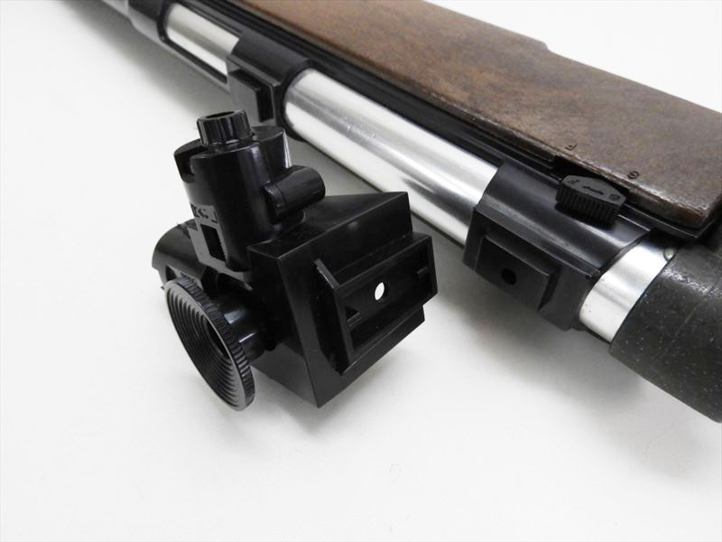 [タカトク] SS スーパー X エアコッキングライフル 6mmBB弾変更 (中古) 製品詳細画像3 精密アジャスタブルリアサイトの固定ビスが欠品。