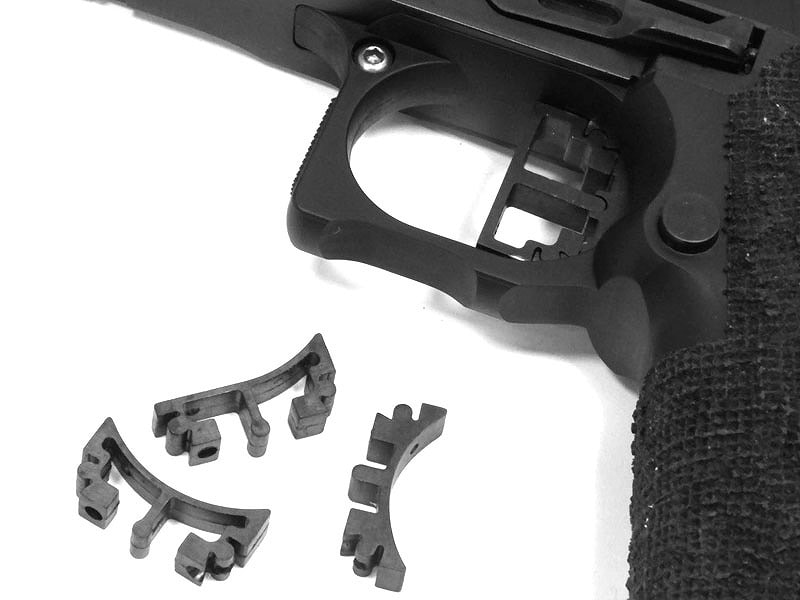 スチール製の丈夫なマウント、前半分が好みの形状に組み替えられるインターチェンジャブルトリガー