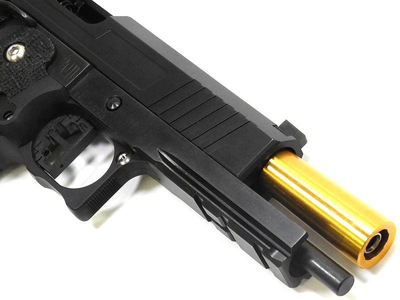 ハンドガンの場合は全体を金属性とする組み換え、エアソフトガンの場合は射出エネルギー0.98J以上にする改造を行うと銃刀法違反となります。HFC134a仕様のガスガンにCO2用マガジンを組み込む、スライドを金属製の物に差し替える等、簡易な改造でも罪に問われる可能性がございますので、絶対にお止めください。