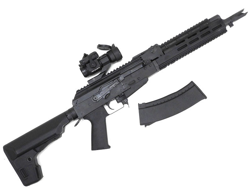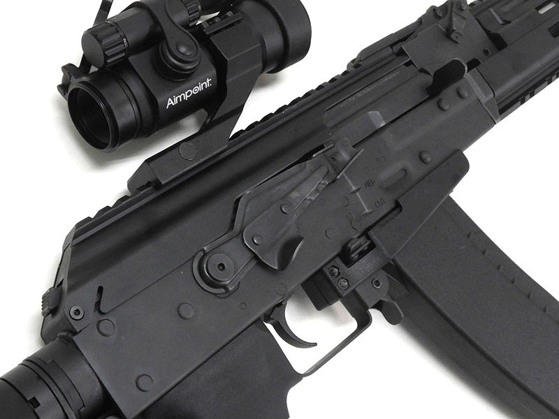 1974年にソビエト連邦軍が従来のAK-47系列の後継として採用した自動小銃。ベトナム戦争でアメリカ軍のM16によって小口径の利点が明らかになったのを受けて開発され、AK-47の7.62mmから5.45mmへ小口径化されている。その他マズルブレーキが大型化され、反動の軽減や発射炎の抑制を実現している。外見は旧来のAK-47系と似通っているが使用弾薬が異なるため互換性はない。