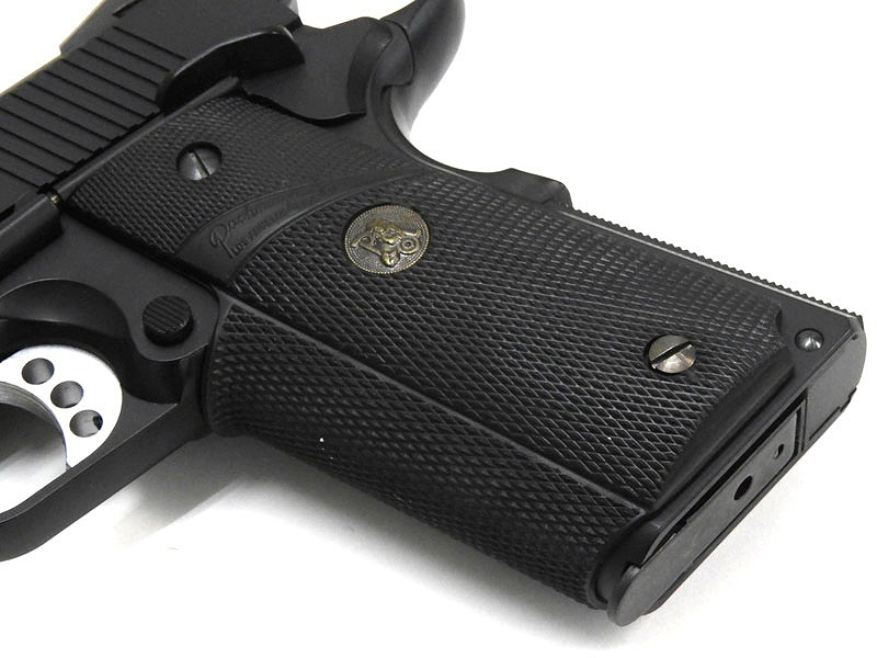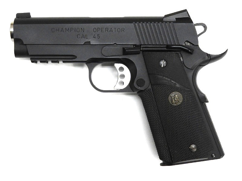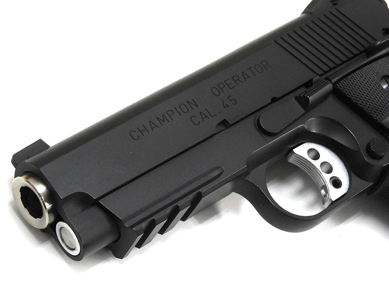 SFAの誇る人気タクティカル.45、オペレーター!"チャンピオン"は、グリップレングス&ファイヤパワーはそのままにスライドを短く切り詰めた、コルトでいうトコロのコマンダーサイズ。
