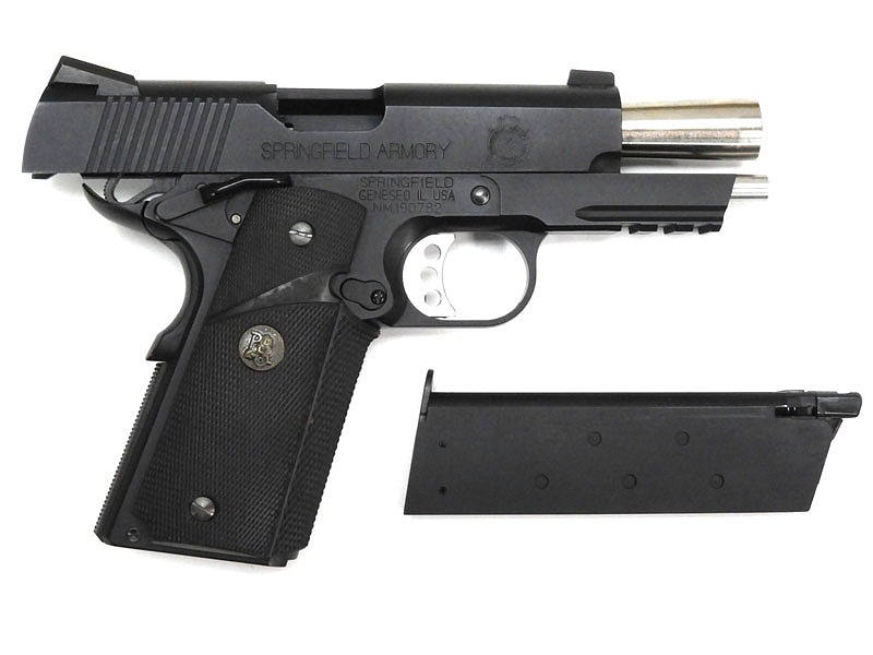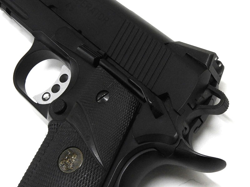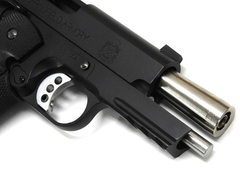 1911においてはプロフェッショナル向けとして位置づけられるコマンダーサイズ、SFAにおいてはチャンピオンがそれにあたり、その中でもライトレールを装備したタクティカルなモデルがこのチャンピオンオペレーター。フィクスドコンバットサイト、アンビセフティ、デルタハンマー、コーンバレル、ロングリコイルSPガイドなどなど、タクティカル.45の定番要素はすべて詰まっており、頼もしい説得力がある。ある意味オーソドックスなパーツ選定で見慣れた感もあるが、細かい部分の違いの分かる玄人に受けるモデルといえるだろう。
