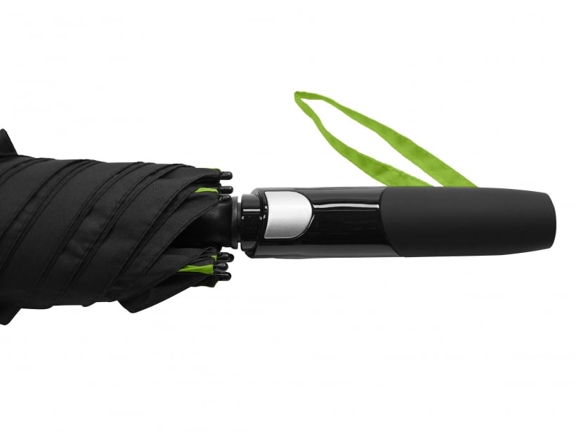 GLOCKのポリマーフレームを思わせるしなやかなプラスチック製の受骨で全体は極めて軽量。開く時は柄のシルバーのスイッチを押すことでスッと開き、無粋なストッパーなしで自然に止まります。閉じる時も「カチッ」と小気味よい音を立ててスムーズかつ確実に閉じます。