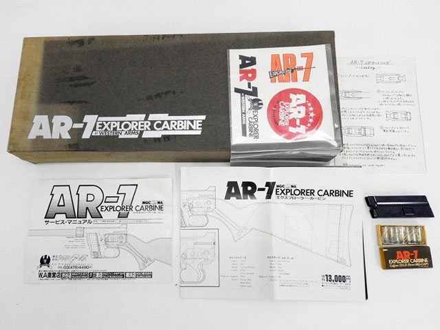 [WA] AR-7 エクスプローラーカービン ストック収納式 発火モデルガン (未発火) 製品詳細画像 箱付属品など。少しヨレっとなっていますがシールもついています。