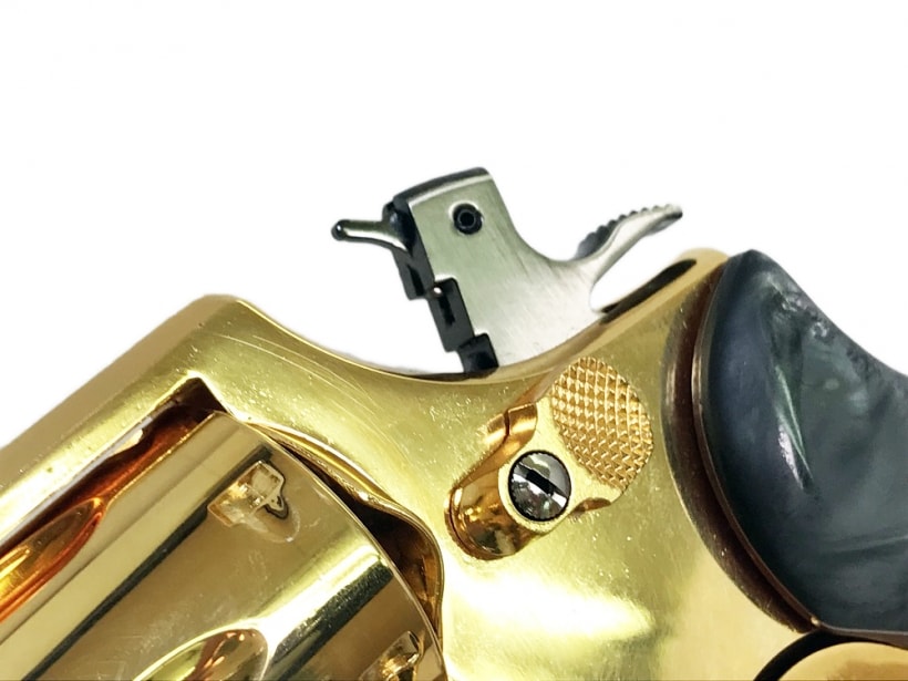 丸形のフロントサイトがとてもクラシカルな印象を与えています。アクションをするたび「チャキン」「カチン」という音。樹脂製の物では味わえないリアルな雰囲気です。