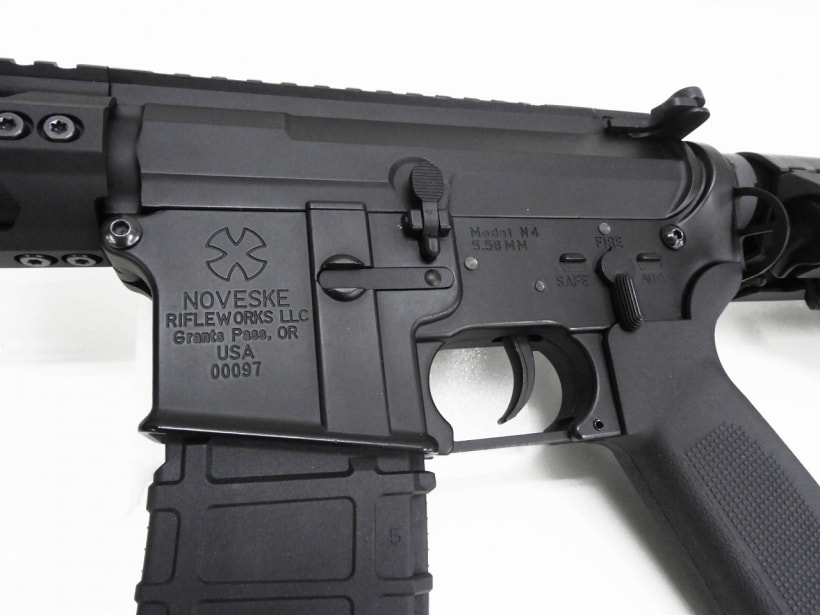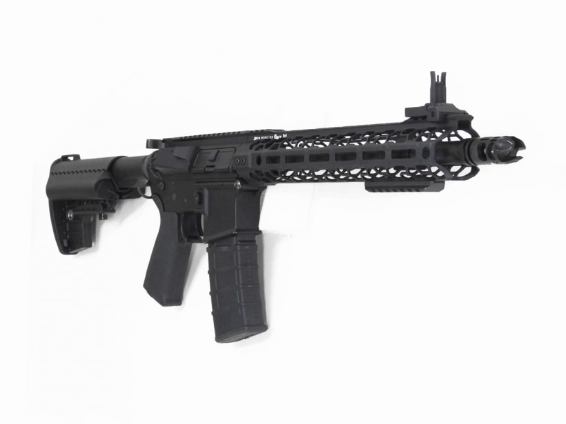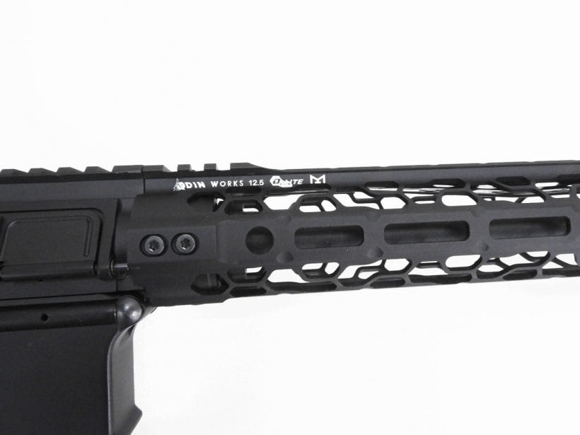 ODIN WORKSの「12.5 インチ M-LOK 02 LITE」ハンドガードを再現。六角形の肉抜き穴で構成された繊細なスケルトン構造で、軽量かつデザイン性に優れています。ロアレシーバーにはNOVESKEの刻印が入り。アッパーレシーバーは「VLTRO MUR-1」を再現したものを採用しました。