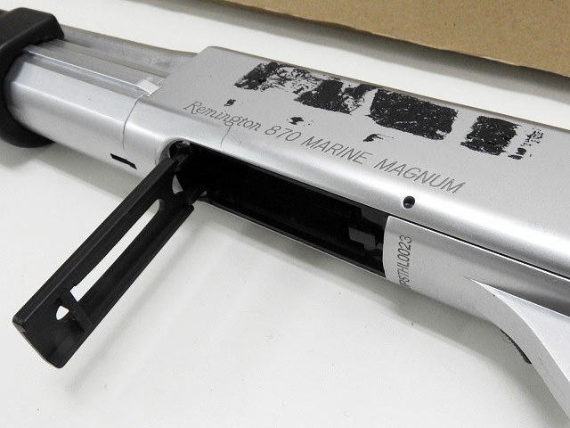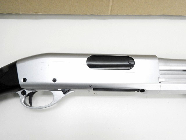 M870ポンプアクションエアコッキングガン!!迫力のあるロングモデル。リアルなレミントンの刻印が入ってこの価格!!
